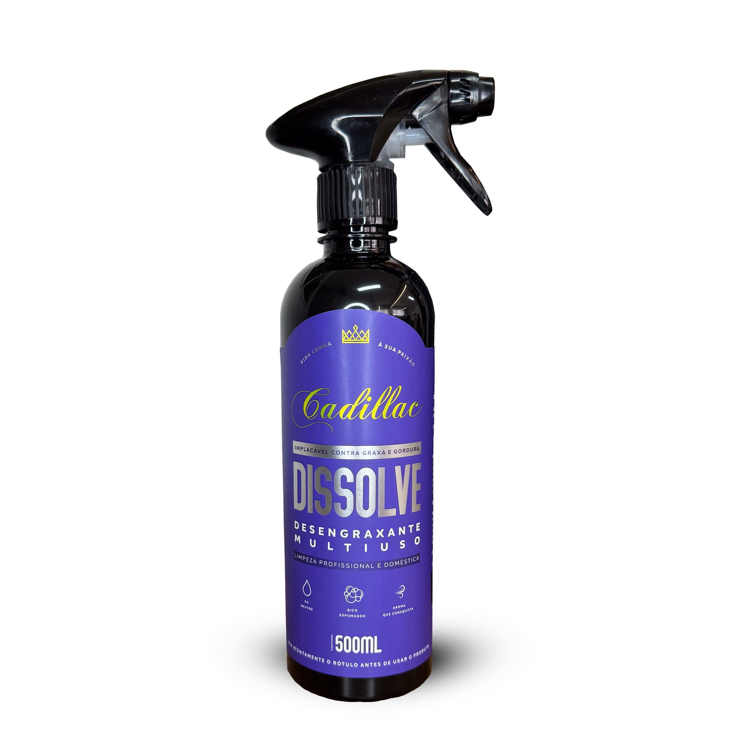 O Dissolve da Cadillac é um desengraxante multiuso de alto desempenho, formulado para dissolver gordura, óleo, graxa e sujeira pesada com rapidez e eficiência. Com pH neutro, ele limpa sem agredir pintura, metais, plástico ou borracha — perfeito para uso no carro, na garagem e dentro de casa.
